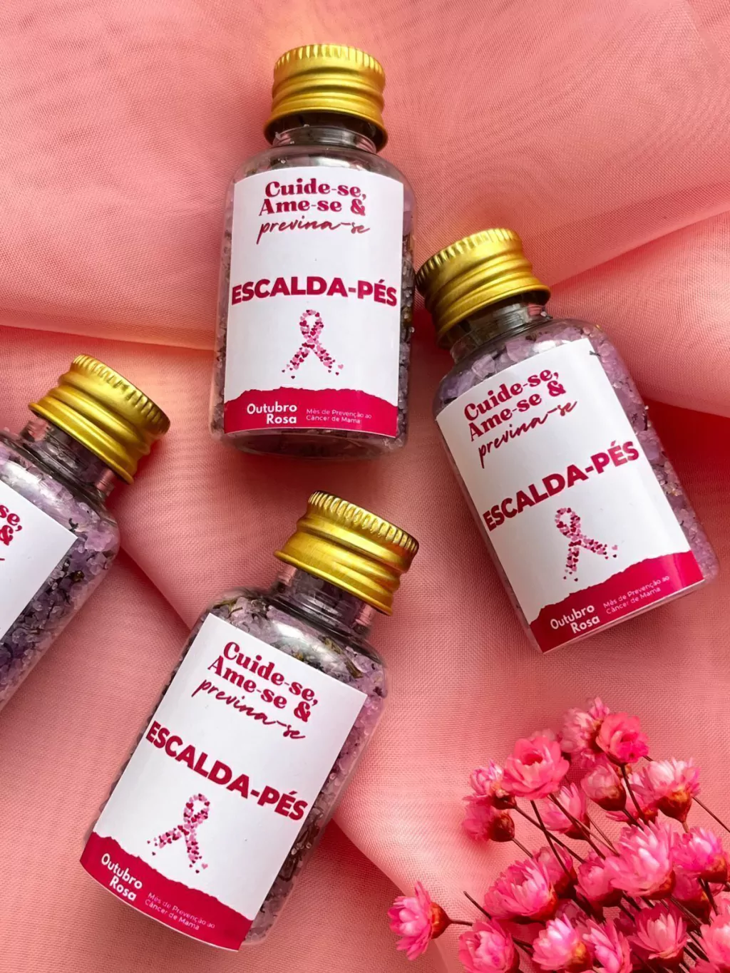 Nosso escalda-pés personalizado para o Outubro Rosa é a maneira perfeita de oferecer relaxamento e autocuidado. Com ingredientes especiais e uma tag exclusiva, ele promove bem-estar enquanto conscientiza sobre a importância da saúde feminina. Um mimo ideal para presentear suas clientes com carinho.